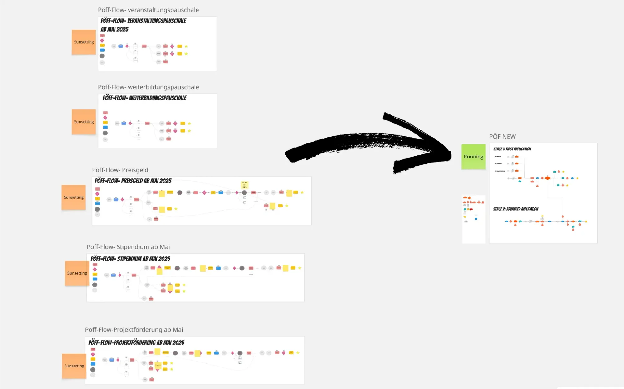 I collapsed five separate workflows into one parameterized workflow that covers all five offers. I standardized naming, properties, and transitions. I added clear comments and grouping inside the workflow.